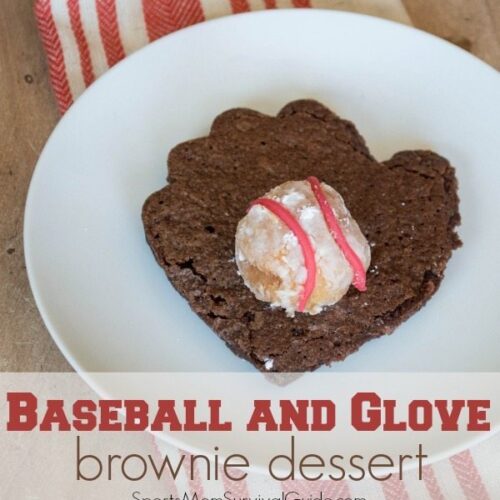 What you need: brownie mix (or two) and required ingredients, powdered sugar donut holes, pack of Twizzlers Pull ‘n’ Peel Candy, and Baseball Glove Cookie Cutter