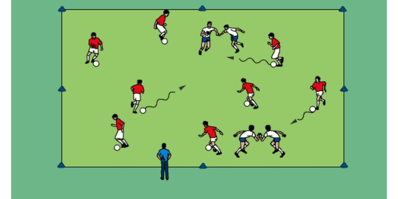 Hexagon Dribbling Print/Download This Drill Basic Information Age Group: (5-7yrs) (8-11yrs) (12-15yrs) Number of Players: 8+ Difficulty: Easy Time: 5-15 min. Emphasis: Dribbling, Passing Field Preparation: first player in each line with a ball cones to mark off area Description: players with the ball dribble …