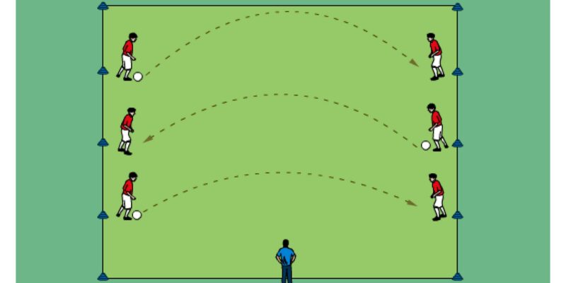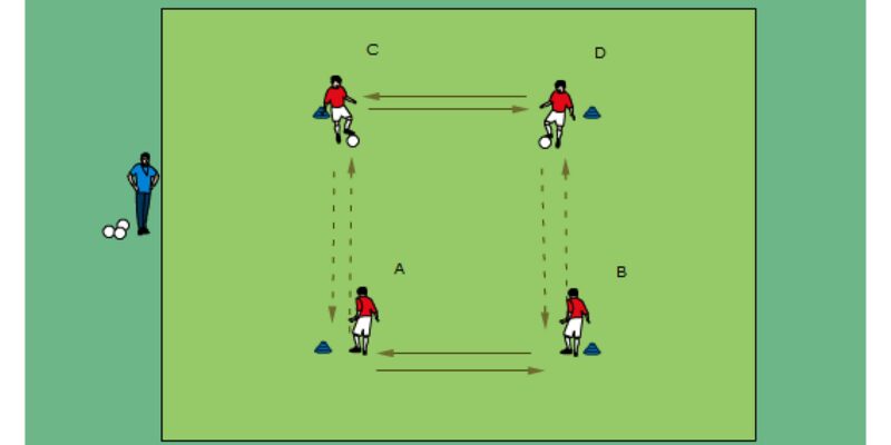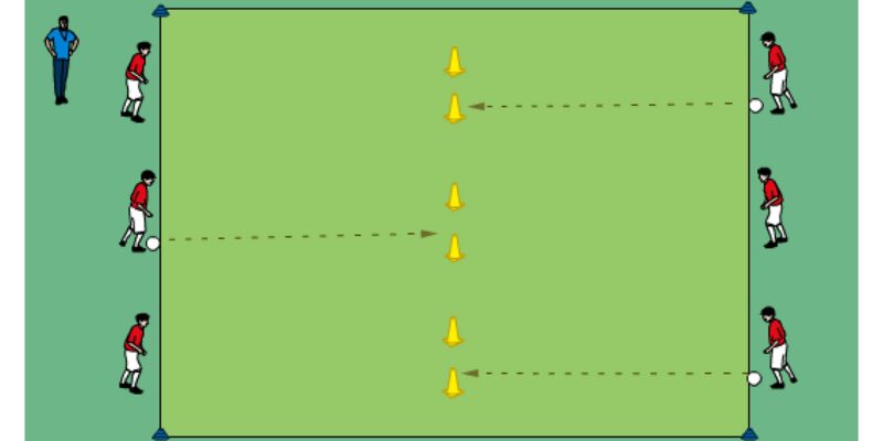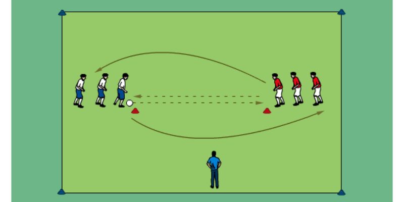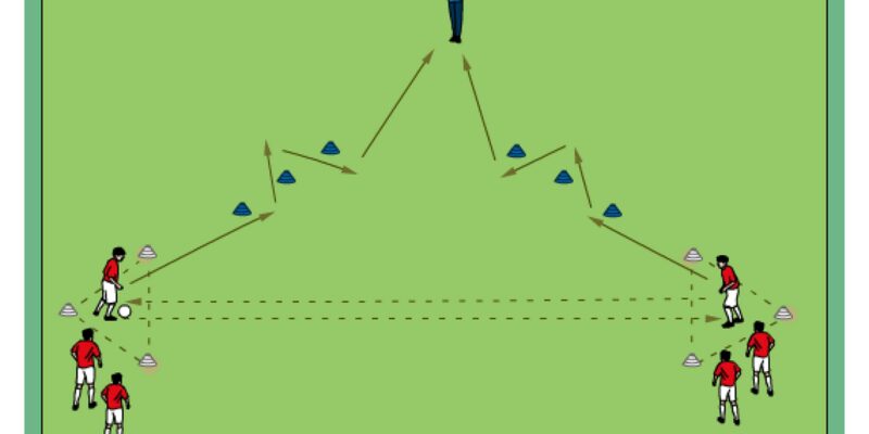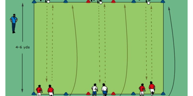 Passing Pattern # 11 Print/Download This Drill Basic Information Age Group: (5-7yrs) (8-11yrs) (12-15yrs) Number of Players: 6+ Difficulty: Easy-Medium Time: 5 min. Emphasis: Passing Field Preparation: 3-4 players in each line cones 6-10yds apart repeat setup to accommodate the entire team Description: players pass …