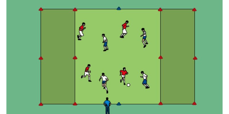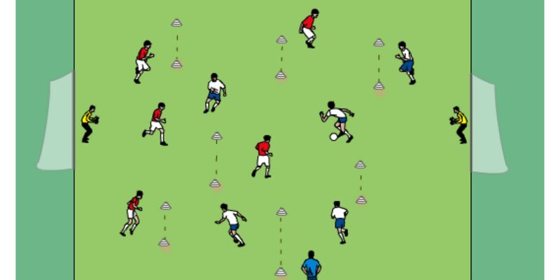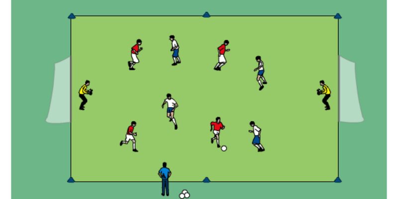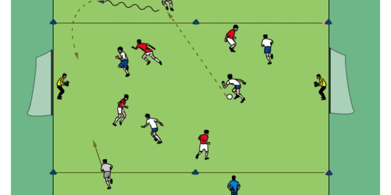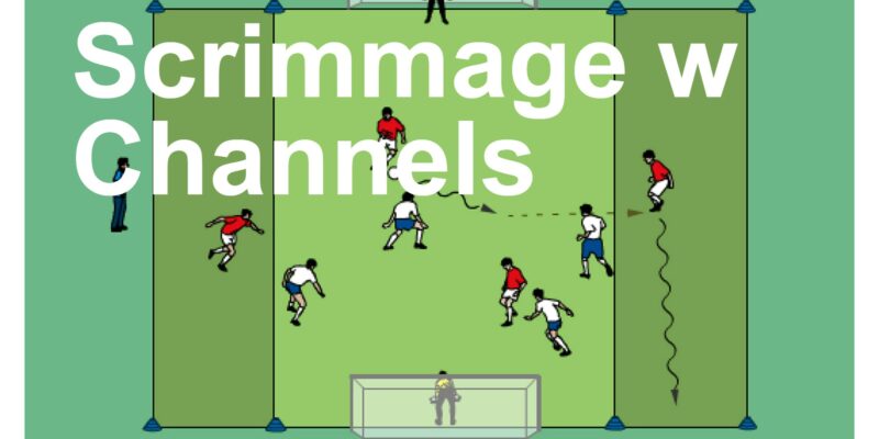 Neutral Channel Players Print/Download This Drill Basic Information Age Group: (8-11yrs) (12-15yrs) (16-Adult) Number of Players: 10+ Difficulty: Medium Time: 15-25 min. Emphasis: Passing, Possession, Finishing, Attacking, Defending Field Preparation: 2 teams grid (40yds x 50yds) cones to mark off area pinnies Description: neutral channel …