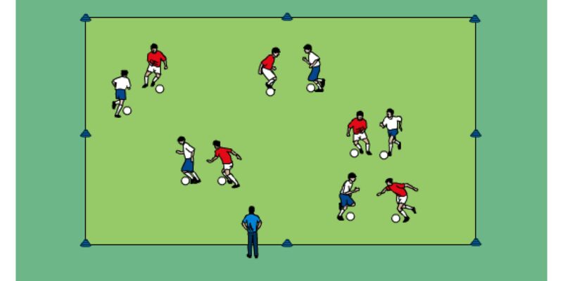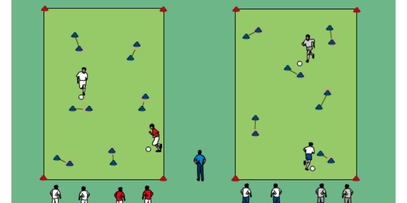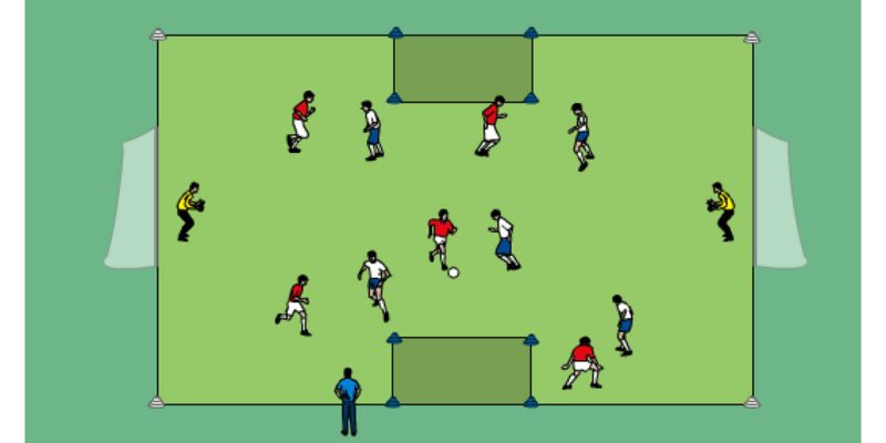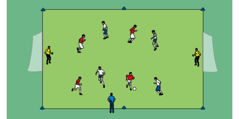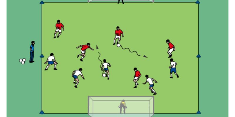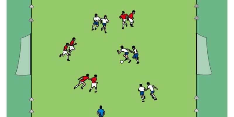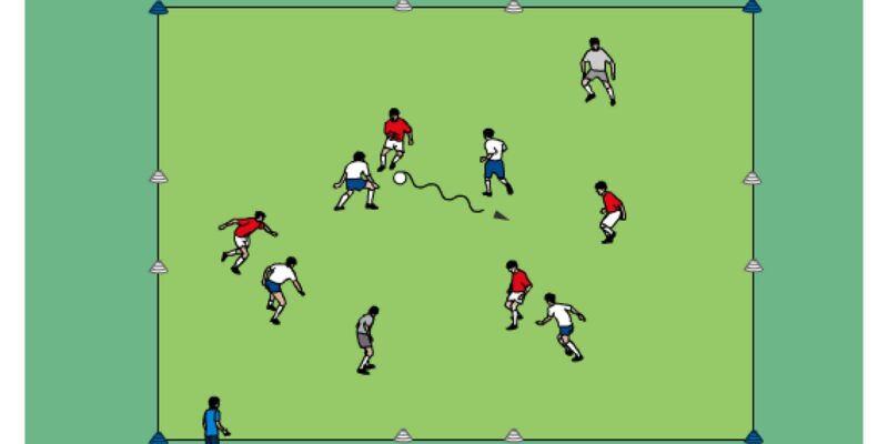 Four Cone Goals Print/Download This Drill Basic Information Age Group: (5-7yrs) (8-11yrs) (12-15yrs) (16-Adult) Number of Players: 6+ Difficulty: Easy-Medium Time: 10-20 min. Emphasis: Dribbling, Attacking, Defending Field Preparation: 2 teams grid (30yds x 40yds) 4 mini-goals pinnies Description: 4v4 plus two neutral players teams …