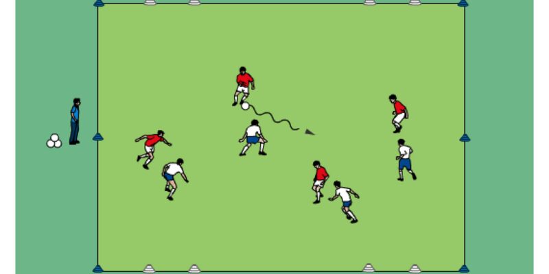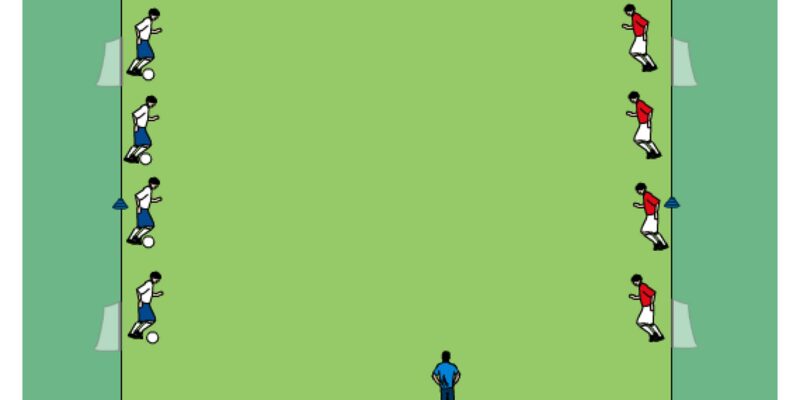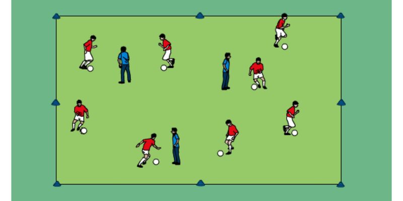 Pac Man Print/Download This Drill Basic Information Age Group: (5-7yrs) (8-11yrs) (12-15yrs) Number of Players: 5+ Difficulty: Easy Time: 10-20 min. Emphasis: Dribbling, Passing Field Preparation: each player with a ball grid (20yds x 25yds) cones to mark off grid Description: two players (Pacmen) start …