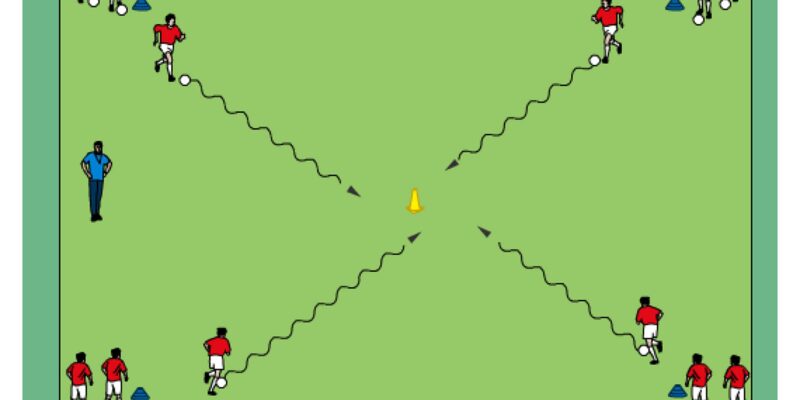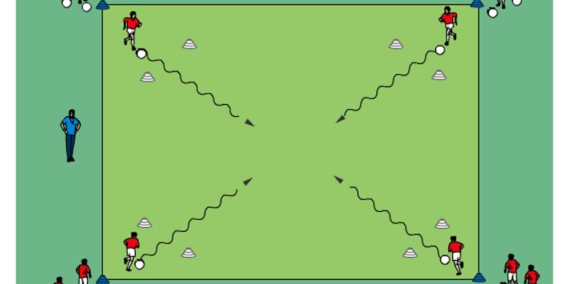 3 Zone Dribble Print/Download This Drill Basic Information Age Group: (5-7yrs) (8-11yrs) (12-15yrs) Number of Players: 4+ Difficulty: Easy Time: 5-15 min. Emphasis: Dribbling, Ball Control Field Preparation: each player with a ball cones to mark off area Description: on coach’s command players dribble into …