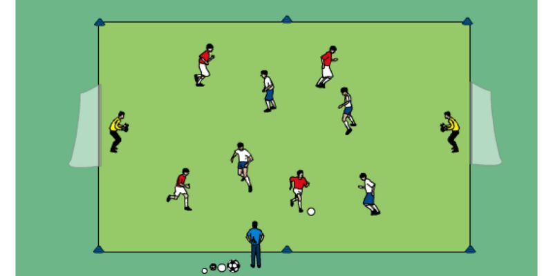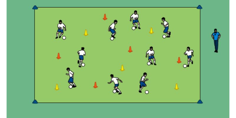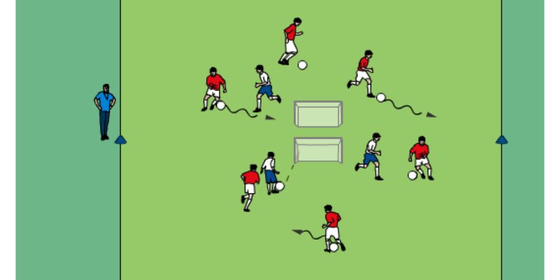Cone Goals Print/Download This Drill Basic Information Age Group: (5-7yrs) (8-11yrs) (12-15yrs) (16-Adult) Number of Players: 6+ Difficulty: Medium Time: 15-25 min. Emphasis: Dribbling, Attacking, Defending Field Preparation: 2 teams grid (25yds x 40yds) cones to mark off area cone goals (3-5yds) pinnies Description: each team …