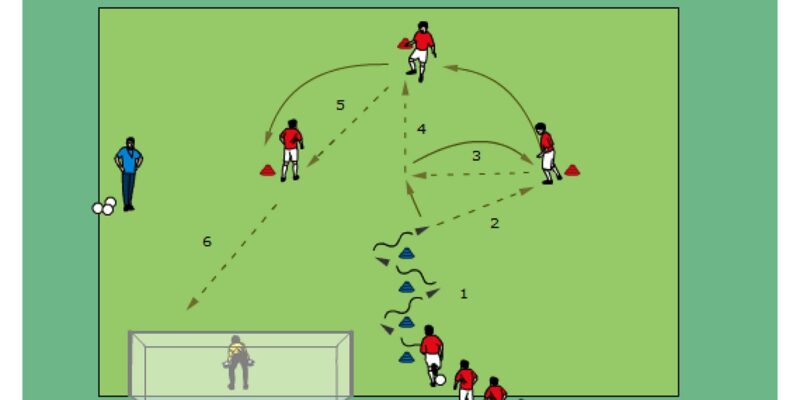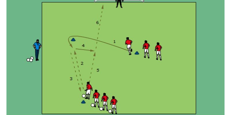 Pass and Shoot Sequence # 34 Print/Download This Drill Basic Information Age Group: (8-11yrs) (12-15yrs) (16-Adult) Number of Players: 7+ Difficulty: Easy-Medium Time: 10-15 min. Emphasis: Finishing, Passing Field Preparation: 1 goal with goalie good supply of cones good supply of balls for continuous play …