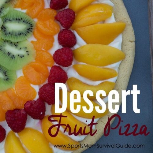 This dessert fruit pizza is great for a large group of people, but it can be easily made into individual servings.