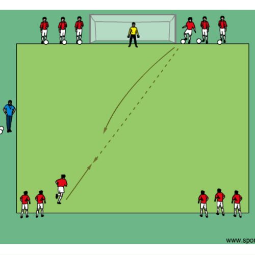 • first player from group on the goal line passes the ball diagonally to the other group and then pressures the