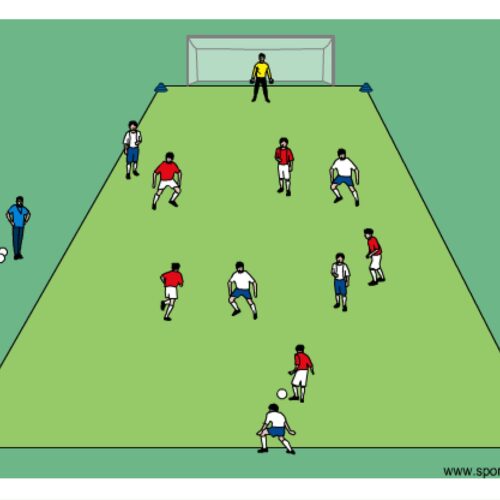 - on coach’s command the player with the ball in that moment attempts to finish on a designated goal