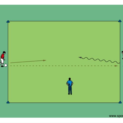 - once pass is received both players can the grid to play 1v1 until one player dribbles across the opposite end-line
