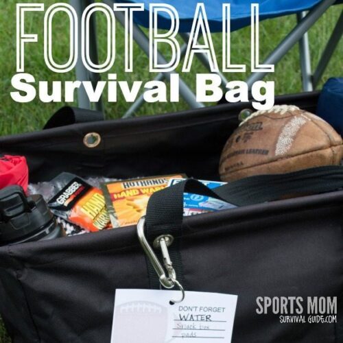 Our little secret for being prepared without having to remember every little thing that you need is…a sports survival bag. The best “practice” for any sports season is to set up a bag that has everything you will or might need for the season. It should be a bag that you can just grab and go without having to pack every time. AND since football season is upon us, we thought it would be a great place to start.
