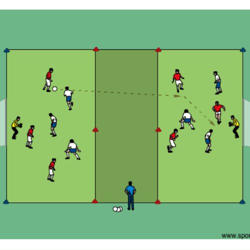 • teams score by passing the ball to a teammate in the attacking zone who then attempts to score by utilizing his