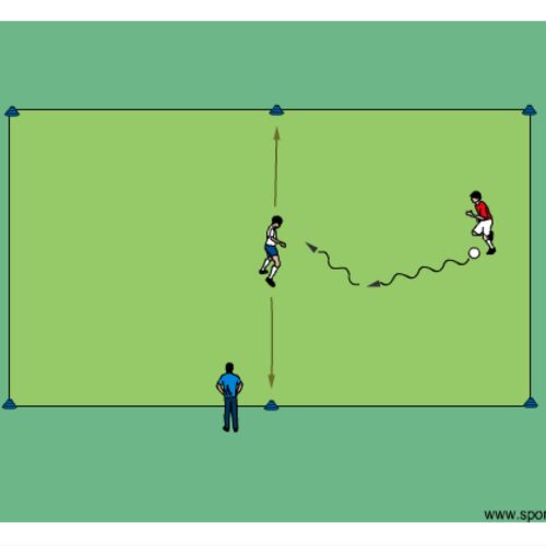 • the defender in the middle is restricted to move from side to side only on the middle line trying to stop the dribbling attacker