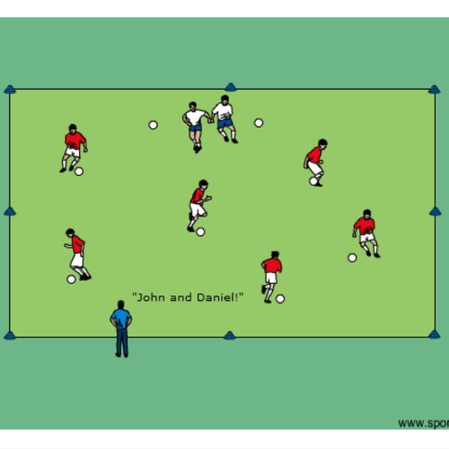 - on coach’s command two players (hunters) knock their balls out and stay connected by holding hands