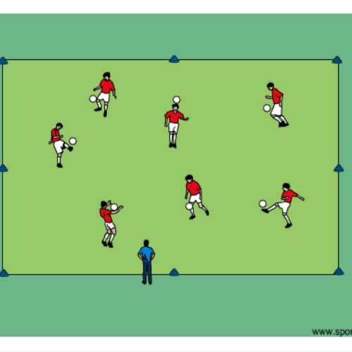 - players juggle inside playing area (every other touch must be with weaker foot)