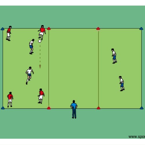 - if defenders win the ball, they pass it to the other grid, join their teammates and play 4v2 against two red players in that grid