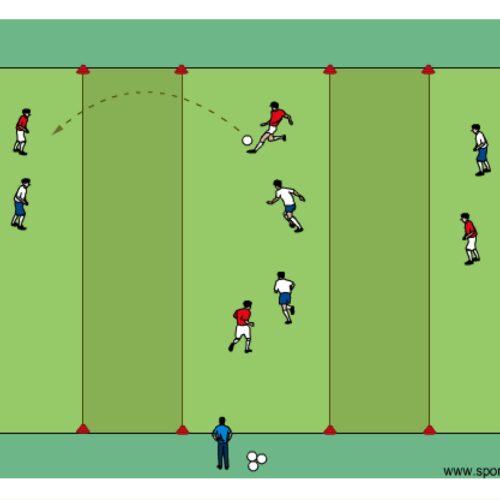 • teams score by making a lofted pass over the middle zone to their target player who controls the ball (ball