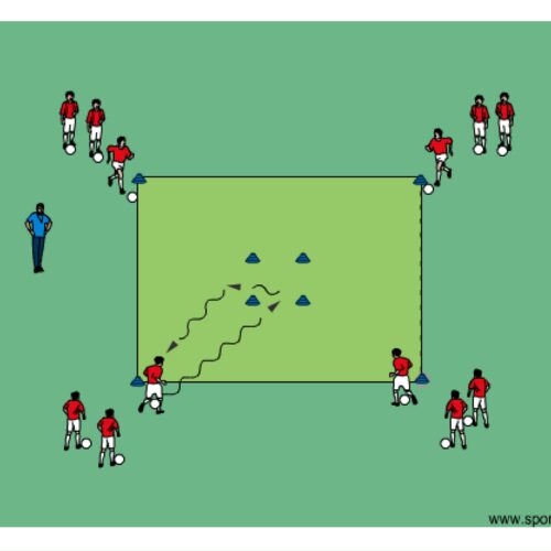 • players dribble around all cones of the inner square (clockwise or counterclockwise direction)
