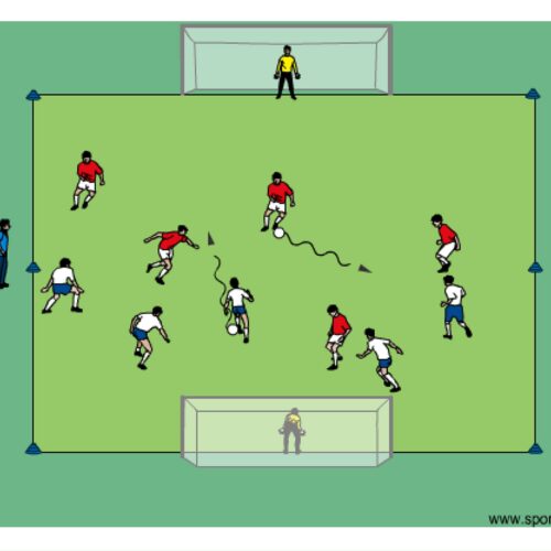 - multiple 1v1s (players can only defend designated player and not tackle another attacker)