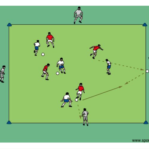 • players inside the grid score by passing to a neutral player who doesn’t have a ball