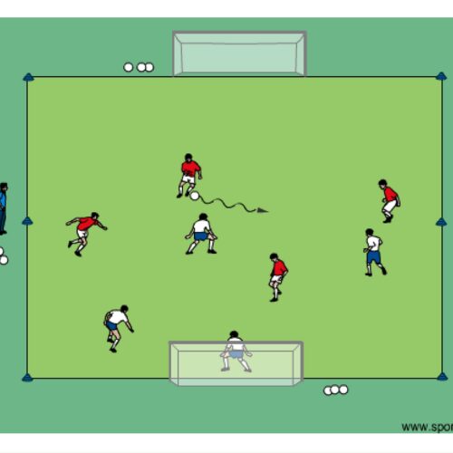 - one designated player on the defending team becomes the goalie who can only block shots with his feet