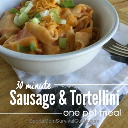 As you have know, we like quick and easy meals. We don’t like to spend a lot of time prepping and preparing dinner, so if you’re like us then you will love this one pot meal sausage and tortellini dish. It’s super easy to to make and takes less than 30 minutes from start to finish!