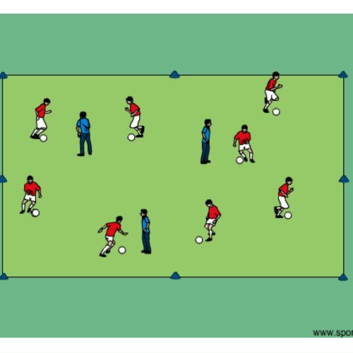 - players get awarded a point by the coach if they dribble towards the tagger and perform a specific move without being tagged
