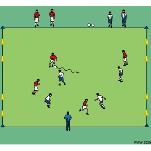- after 5 minutes pairs are reshuffled and again play 4v4