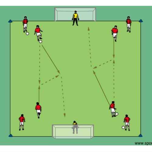 - players pass and finish on goal as shown