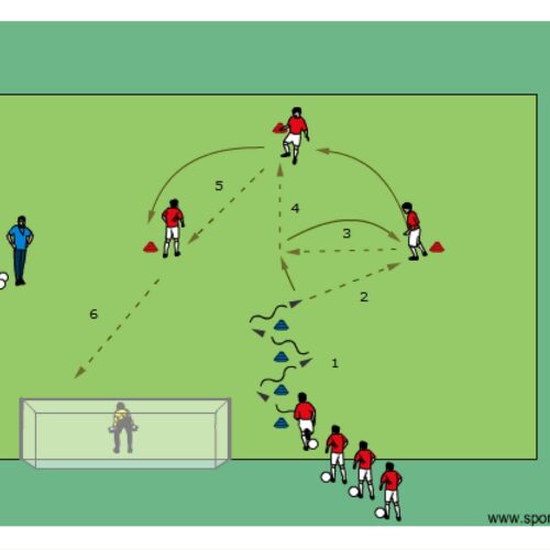 - players pass and shoot on goal in the sequence as shown