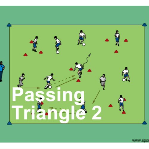 - players make a pass to player inside the triangle who then dribbles out through a different side of the triangle as shown