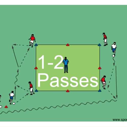 The 1-2 soccer passing drill will focus on passing, combination play, playing with speed, and playing to feet.