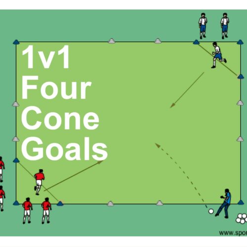 Soccer 1v1 drills like this one are great for focusing on teaching players attacking skills such as taking on their opponent or learning to attack space.