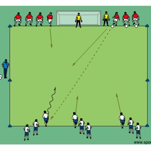 • player 1 passes to player 2 who receives the ball and attempts to finish on goal with the help of the