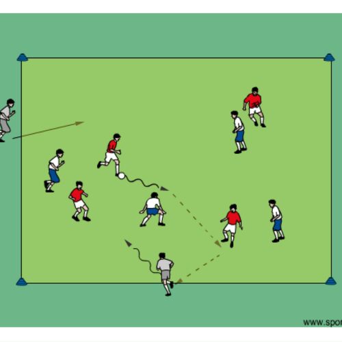 - attacking team attempts to pass to one of the two neutral players who run around the grid freely