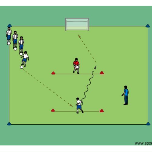 - the ball is passed to the attacker who must dribble past the defender and finish with a shot on the