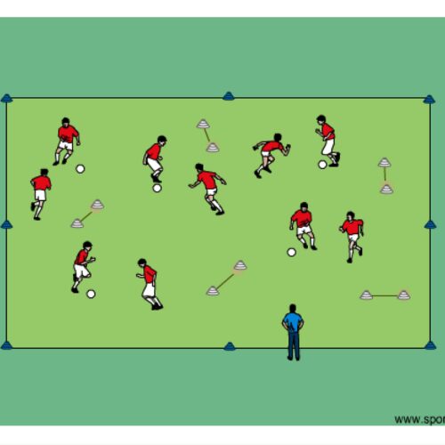 - players with a ball score a point by dribbling through a cone goal