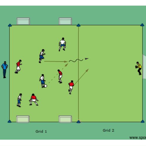 - if the defending team wins the ball they pass to the coach at the goal line in grid 2 to end the sequence