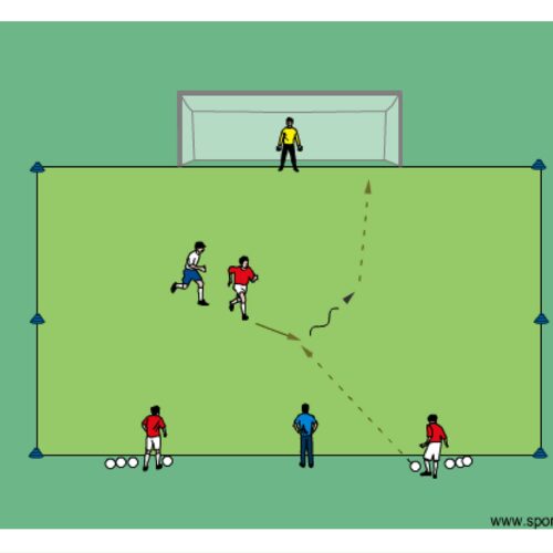 - the attacker attempts to receive a pass from one of the servers and then finishes on goal