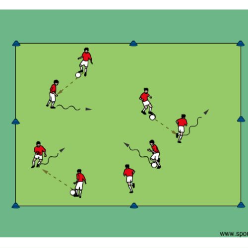 • players dribble inside the grid and pass the ball to another player whose name they call out before