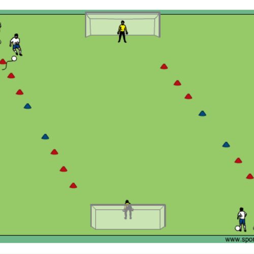 • players shoot on first touch coming off the last red cone