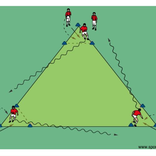- first player runs without a ball to the group to his left, receives the ball and dribbles to next group in a clockwise direction