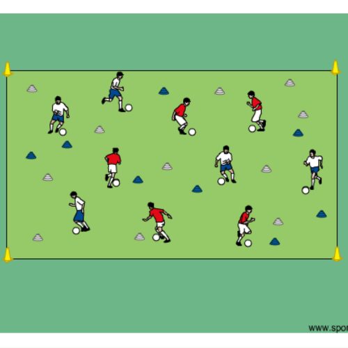 • on coach’s command players dribble and flip over the cones from the other team with their hands while keeping control of the ball