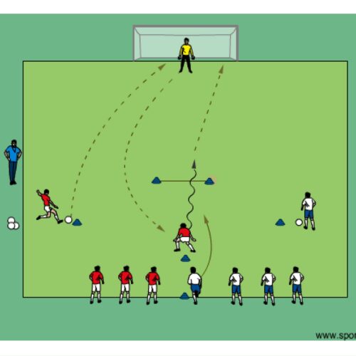 - the attacker then controls the ball and attempts to dribble through the cone goal to finish on goal