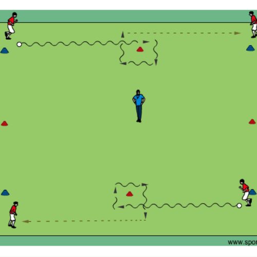 - players dribble around cones as shown