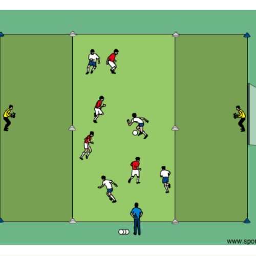 - teams score by dribbling into the end zone and then beat the goalie in a 1v1 situation