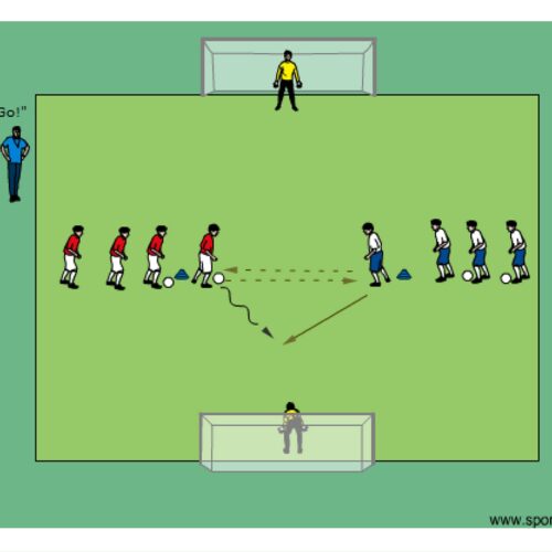 - on coach’s command the player with the ball in that moment attempts to finish on a designated goal