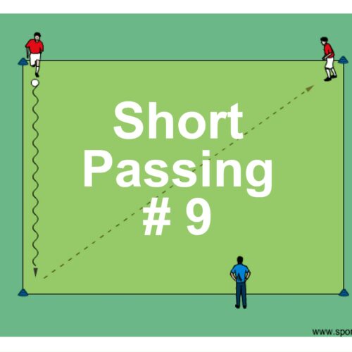 - the receiver now dribbles to the open corner cone and passes to his partner while moving