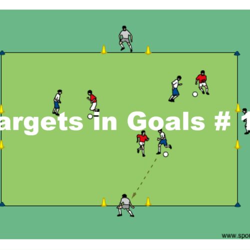 - play 1v1 inside the grid and try to complete a penetrating shot, pass or dribble through the cone goals to the target player