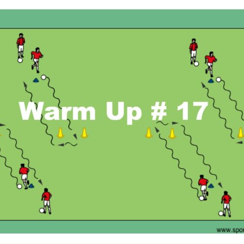 • the first player in line of each group dribbles through the cone goal to his left and then returns to his group
