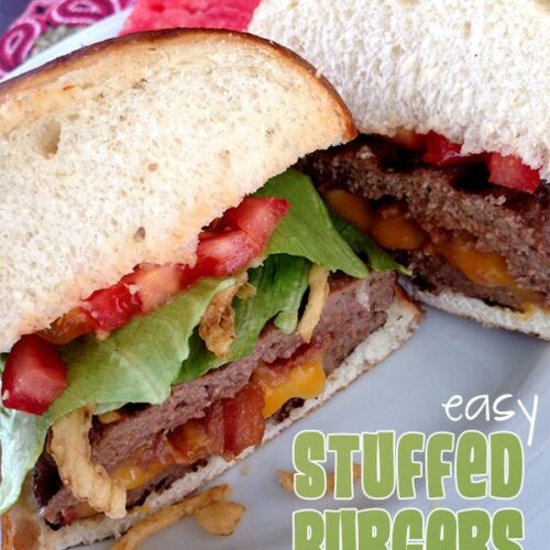 I just take my normal homemade hamburger recipe (which you can grab below) and add fillers/stuffers in the middle of two patties and seal.
